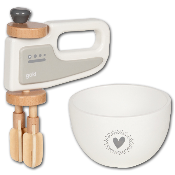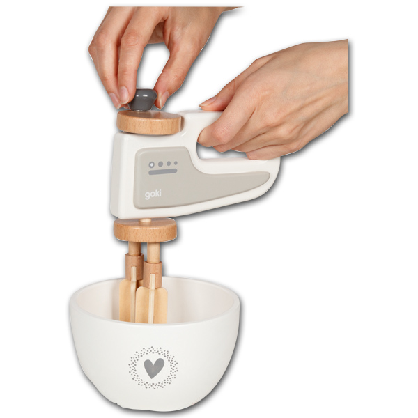 Klassisches Holzspielzeug für die Puppenküche: hier wird gerührt und gemixt - die Bedienung funktioniert über die Betätigung der Kurbel.