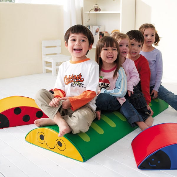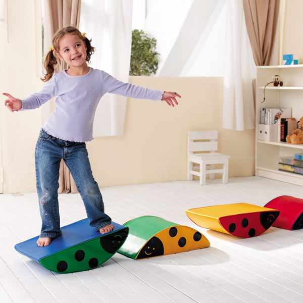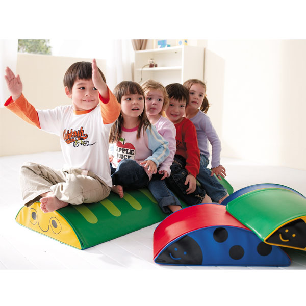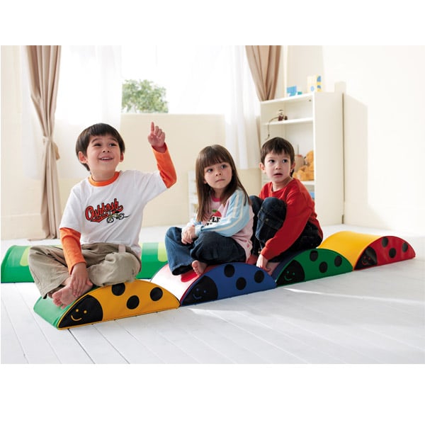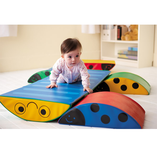 Unendlicher Bewegungsspaß für Kinder jeden Alters! Eine Raupe und vier Marienkäfer in auffordernden Farben für unendlichen Bau-, Krabbel-, Wipp- und Balancierspaß!